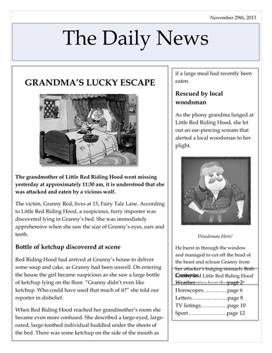Create a news article about how benny was when he was little, interview classmates etc. Text has more vocabulary than expert. Newspaper article layout word, wantmay , and create a good article letter. 10000+ results for 'ks2 newspaper'. In the first sentence sum up what the story is about.